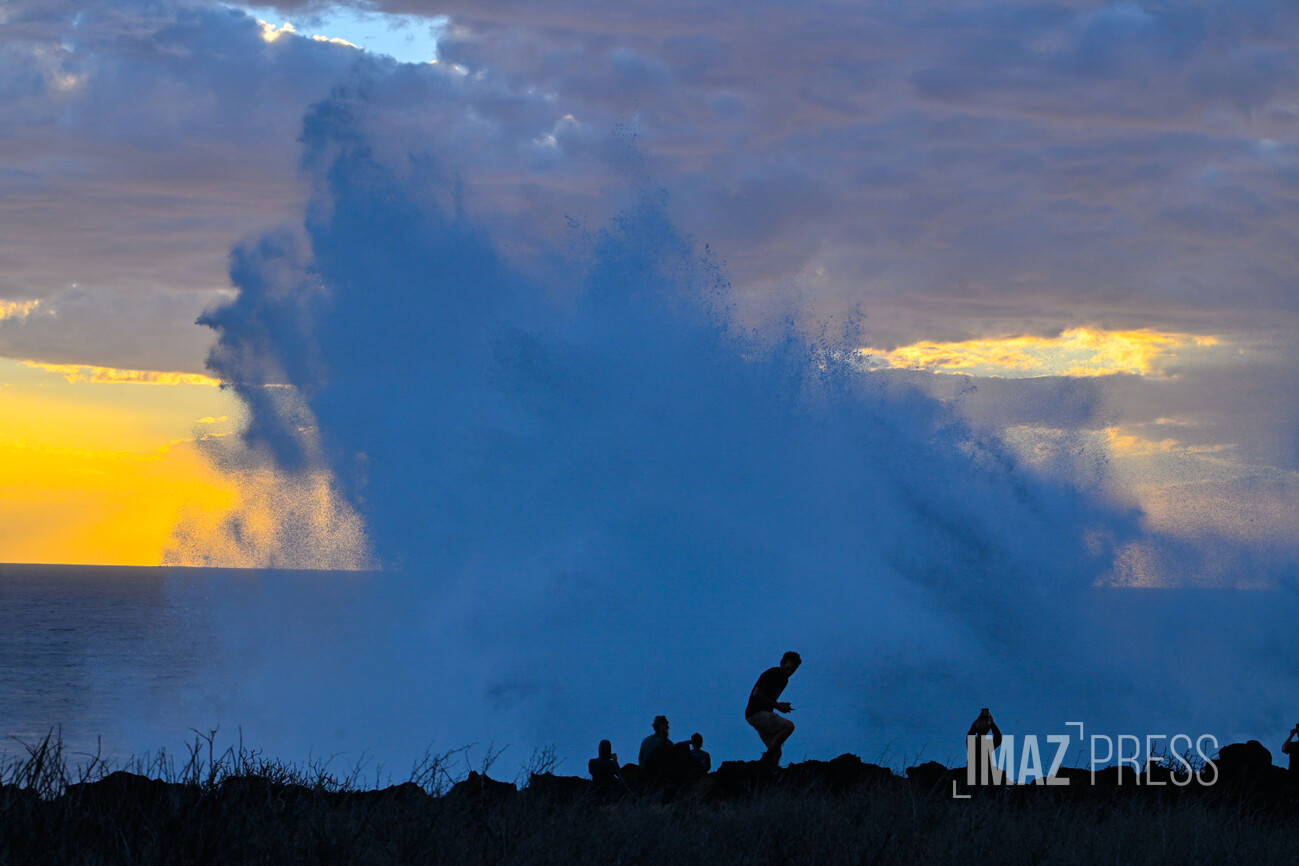 La houle déferle sur les côtes ouest de l'île. Regardez.