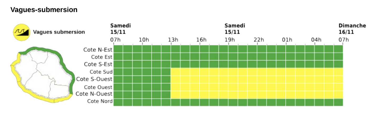 Dimanche, selon les prévisions, "la mer reste forte de la Pointe des Galets à la Pointe de la Table au déferlement de la houle australe voisine de 3 mètres en début de journée et qui s'amortit lentement".