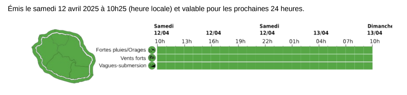 Dans son bulletin émis peu après 6 heures, Météo-France annonce ce samedi 12 avril 2025 que le nord, l'est et le sud-est sont placés en vigilance jaune fortes pluies et orages. La vigilance a été levée à 10 heures. Il n'y a donc pas de vigilance en cours à La Réunion. (Photo : rb/www.imazpress.com)