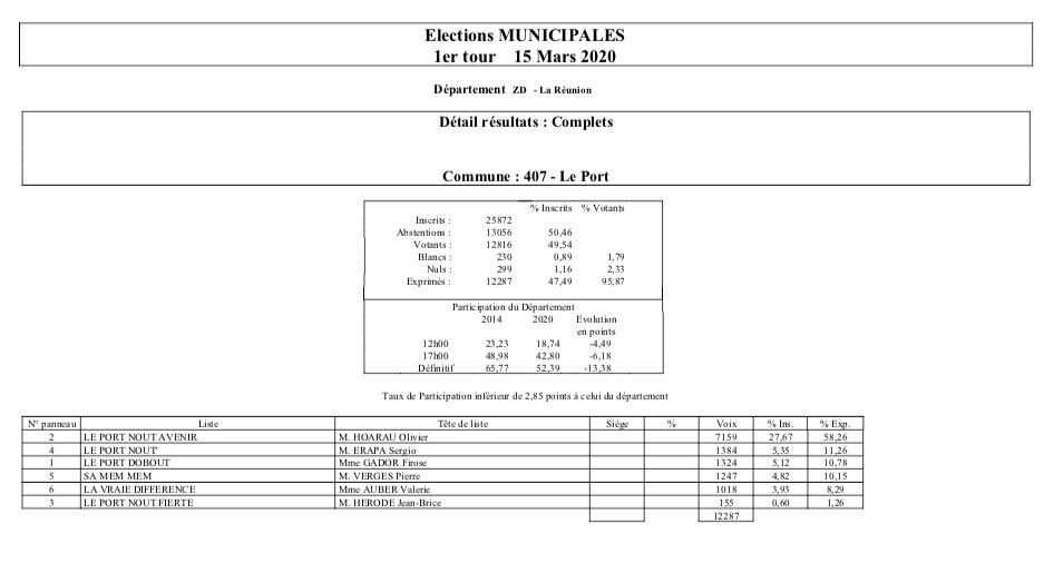 Le taux de participation définitif pour le 1er tour des élections municipales au Port est de 49,64%. En 2014 à la même heure, ce taux était de 64,00%