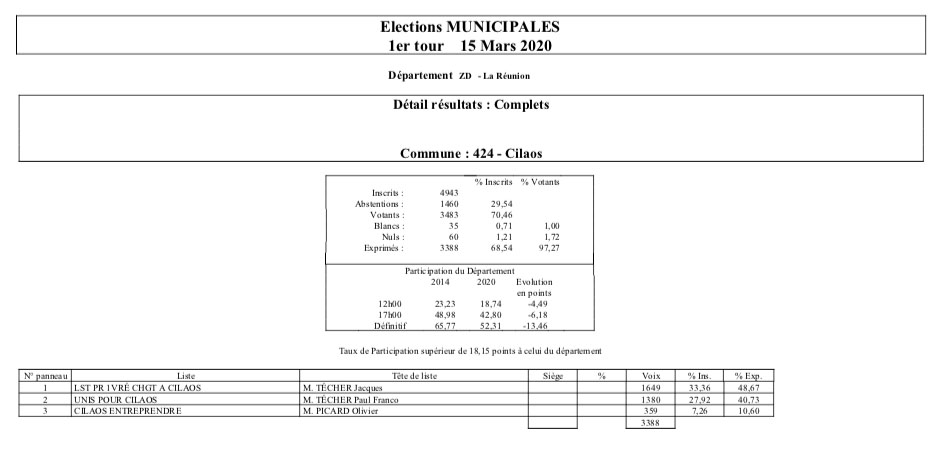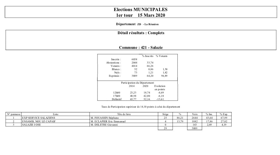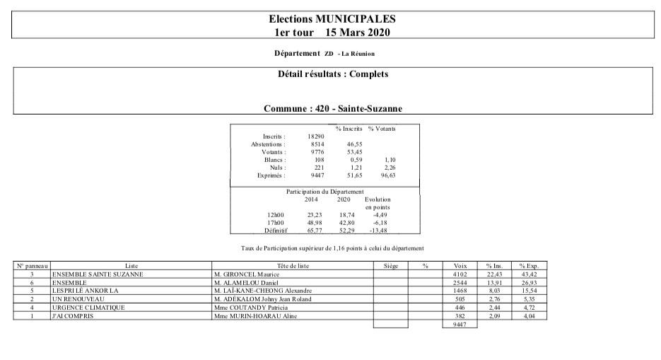 Les résultats défintifs de la commune de l'Etang-Salé :