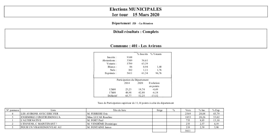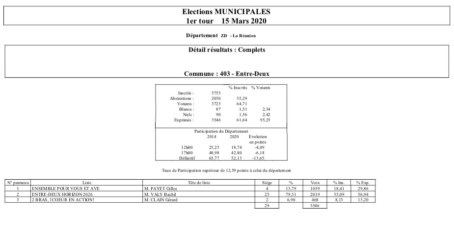 Il est vrai que beaucoup d’électeurs sont en vacances et l’alerte sur le covid19 n’a pas permis aux électeurs de s’exprimer pleinement. Nous comptons sur leur mobilisation pleine pour le deuxième tour, nous restons certains que nous pouvons remporter les élections municipales aux Avirons".