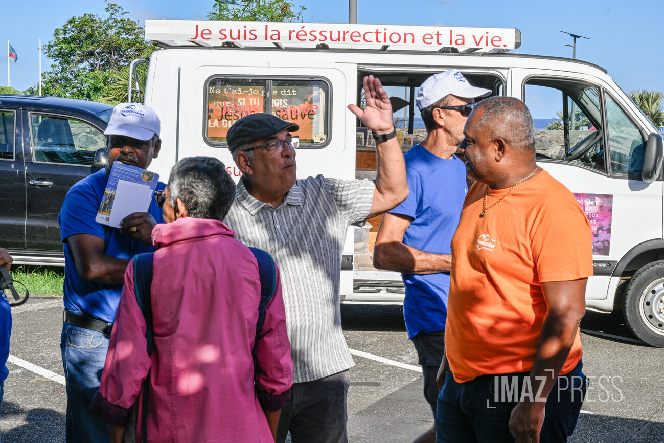 De Dos d'âne à Ravine à Malheur en passant par Moulin Joli ou Coeur de ville, Gilles Hubert serre les mains, écoute, prend des notes. Autour de lui, une petite équipe tracte, discute, frappe aux portes. "C'est là-dessus qu'on fait notre campagne", glisse-t-il. "La proximité, c’est une méthode qu'on a toujours employée".