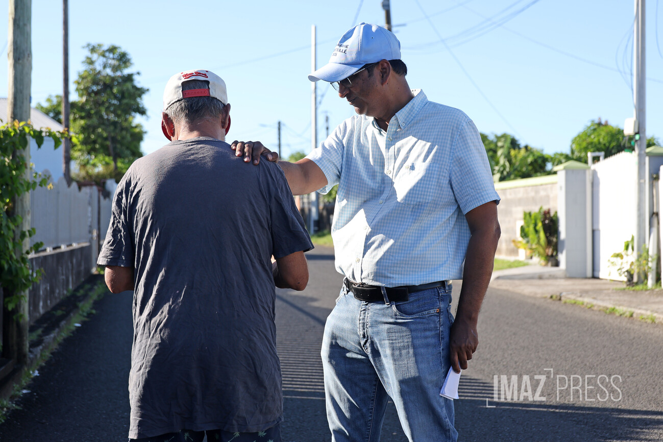 "Lors du porte-à-porte, j'invite les gens aux réunions que j'organise dans les quartiers", explique Jean-Marie Virapoullé. "C'est l'occasion d'avoir des échanges directs avec les personnes, répondre à leurs questions."