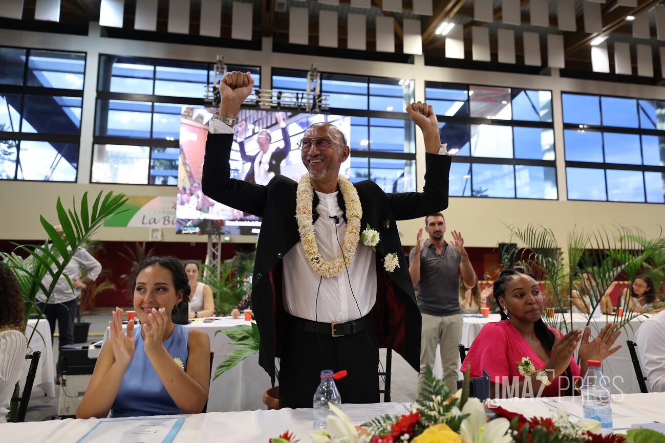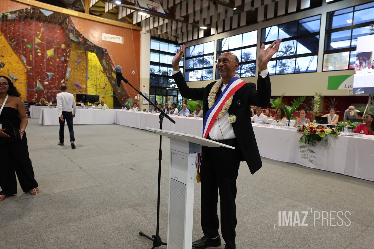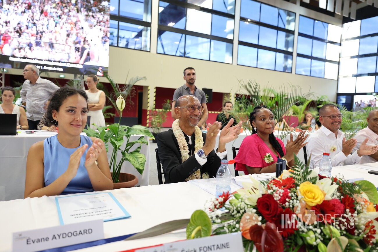 Les conseillers municipaux de La Possession nouvellement élus se sont rassemblés ce vendredi 27 mars 2026 dans le gymnase Daniel Narcisse, pour voter officiellement pour le nouveau maire. Sans surprise, Erick Fontaine a été élu à la tête de la mairie possessionnaise avec 31 voix, après avoir remporté le second tour face à Vanessa Miranville. (Photo Stephan Laï-Yu)