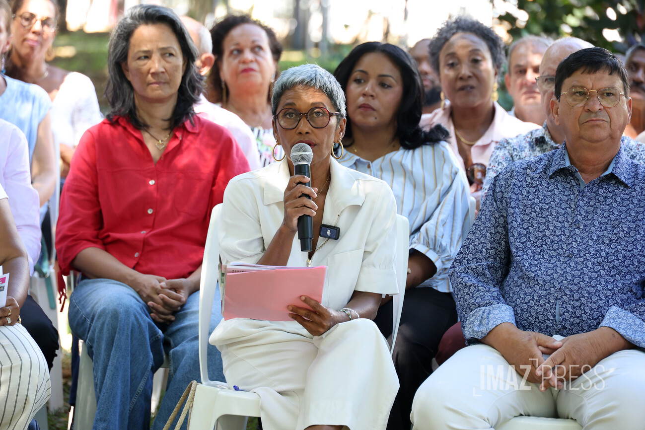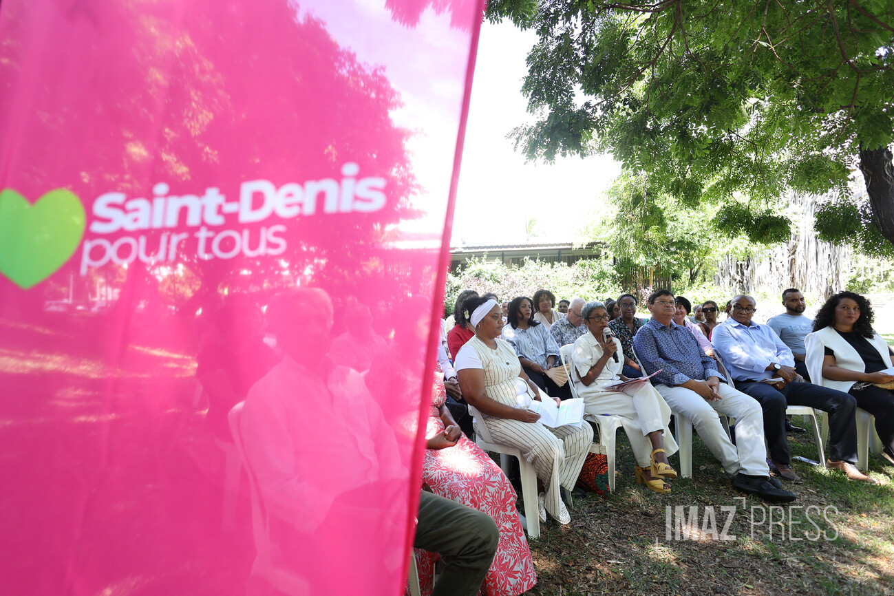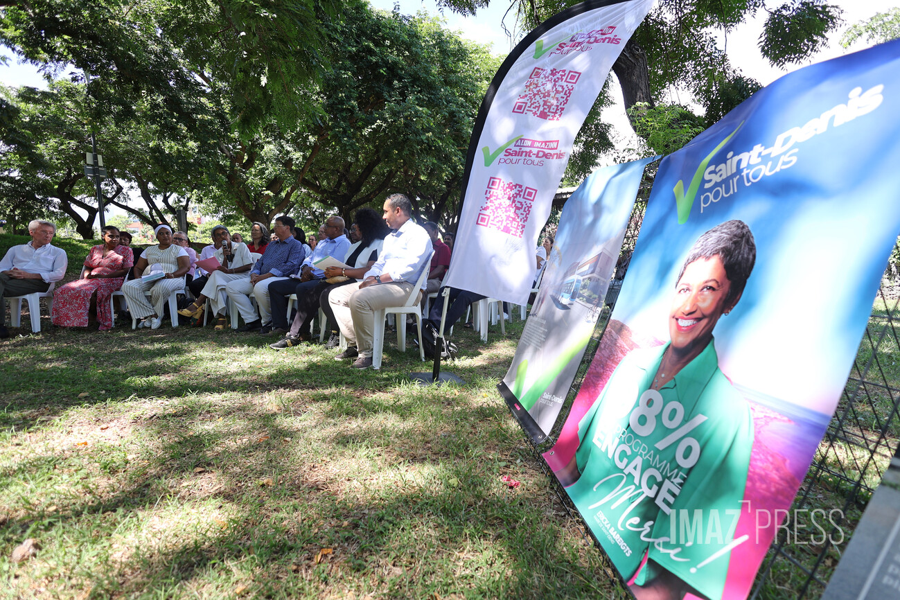 Ce jeudi 5 mars 2026, c'est dans le Coeur Vert Familial de Saint-Denis que la maire sortante Éricka Bareigts a présenté les grandes lignes de son programme. Parmi les premières mesures proposées : une police du logement pour faire le lien entre les bailleurs sociaux et les locataires, quatre maisons de la tranquillité, ou encore un prêt pour que les jeunes de moins de 25 ans puissent créer une micro-entreprise. (Photo : Stephan Laï-Yu /www.imazpress.com)