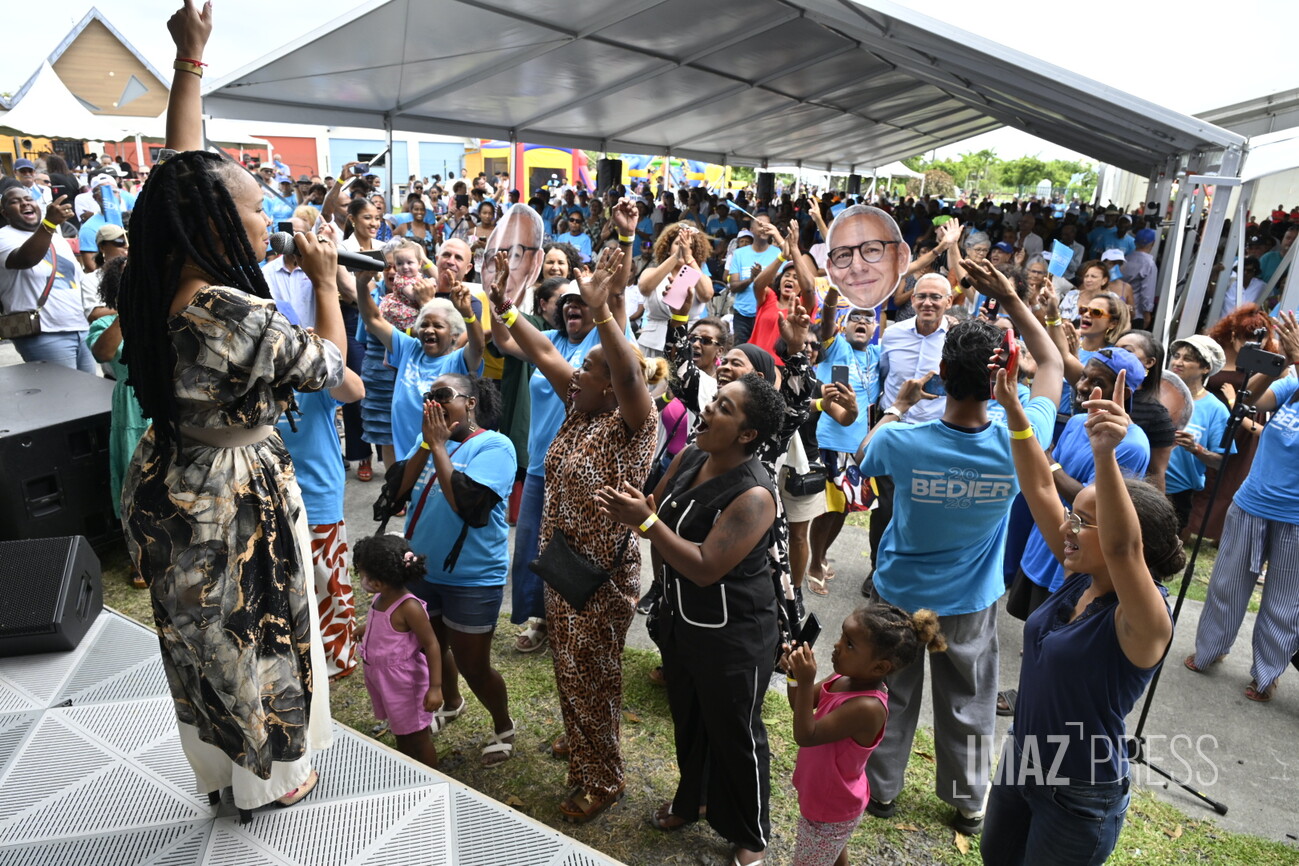 Sur scène, plusieurs prises de paroles, des témoignages d'habitants à Jean-Hugues Ratenon, en passant par Huguette Bello, venue apporter un soutien au maire sortant. Dans son discours, elle a salué "le renouveau engagé à Saint-André ces six dernières années, défendant la stabilité et la continuité face aux divisions". Elle a rappelé l’importance du partenariat entre la Région et la commune, notamment pour le rééquilibrage territorial en faveur de l’Est, citant en exemple les projets structurants portés conjointement au Colosse. Appelant à ne pas "revenir en arrière", Huguette Bello a exhorté les électeurs à renouveler leur confiance à Joé Bédier, présenté comme un maire "qui rassemble quand d’autres divisent".