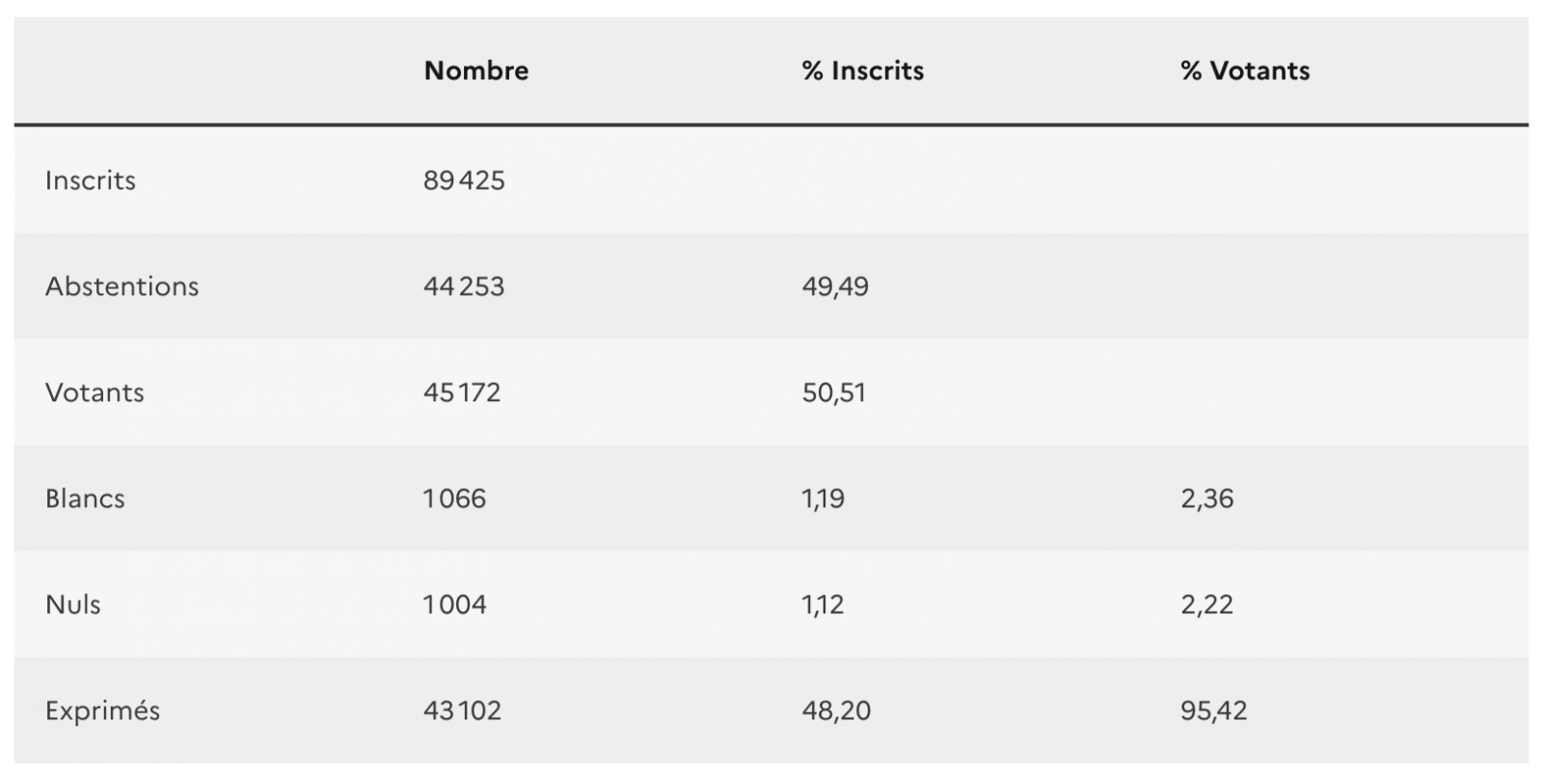 Le taux d'abstention au 1er tour était de 53,65 %.