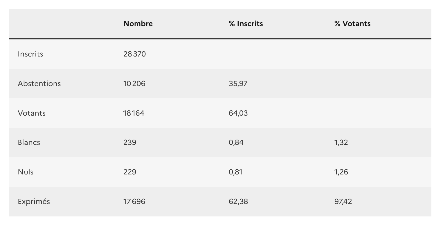 Le taux d'abstention au 1er tour était de 47,88 %.