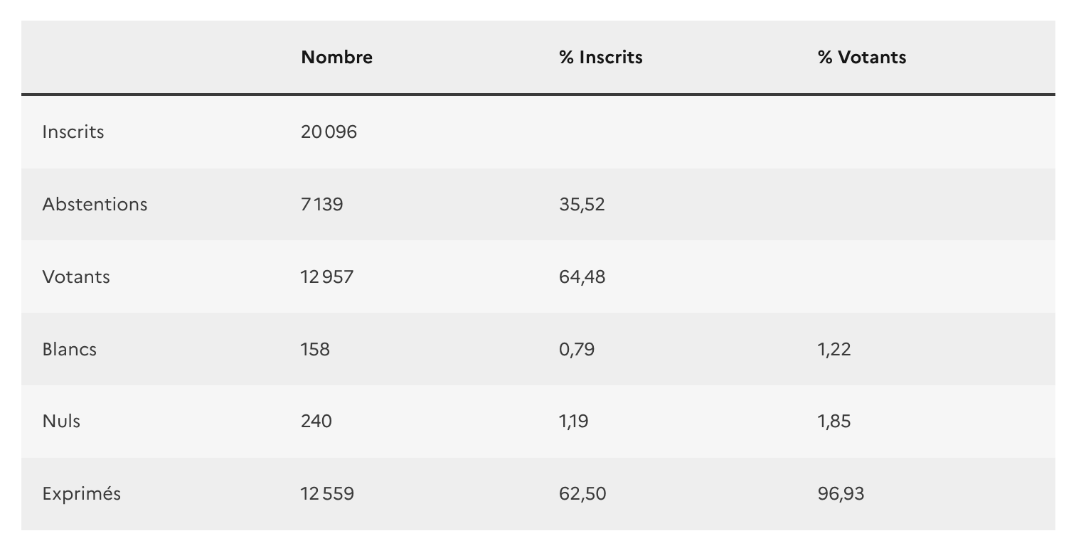 Le taux d'abstention au 1er tour était de 46,55 %.
