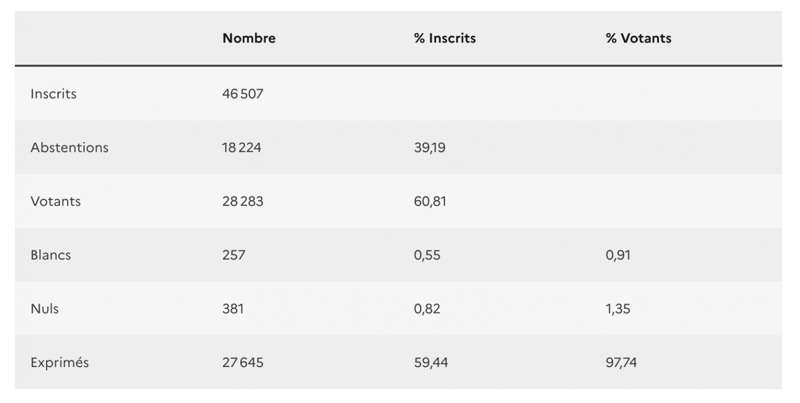 - Nombre d'électeurs inscrits au 26 février 2026 : 46.478