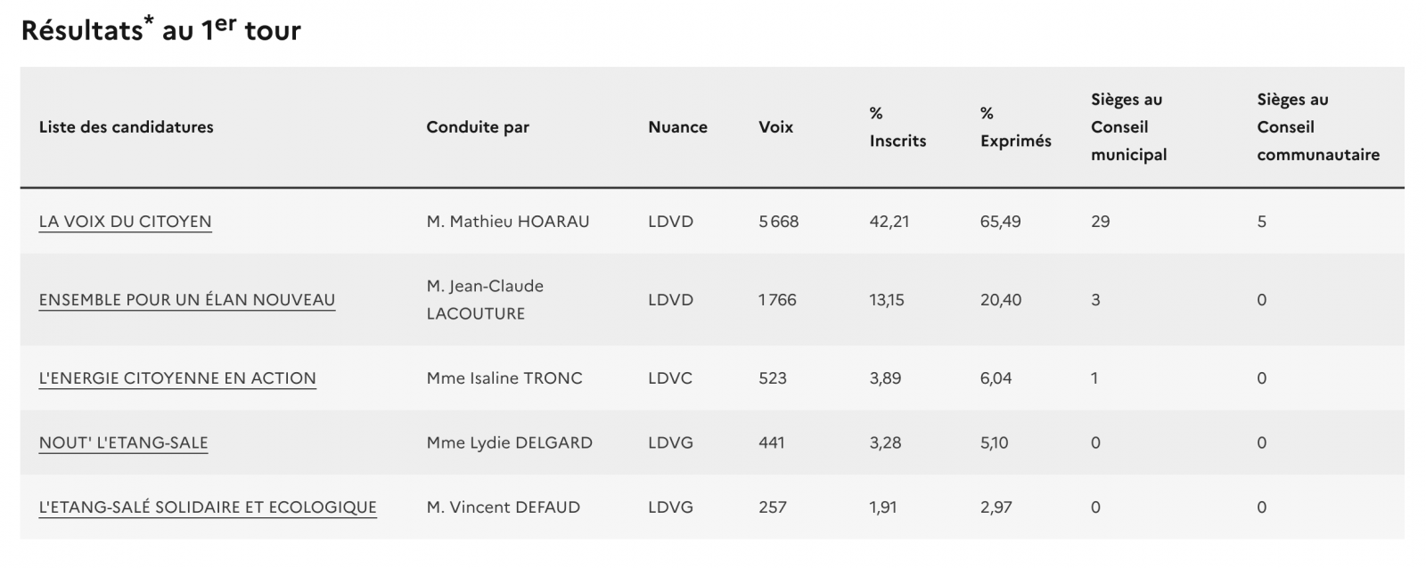 En 2020, Jean-Claude Lacouture avait remporté les élections à L'Étang-Salé avec 50,00 % (4.098 voies) des votes face à Mathieu Hoarau.