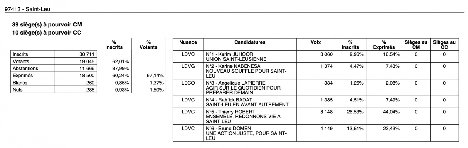 En 2020, Bruno Domen a remporté les élections à Saint-Leu au second tour.