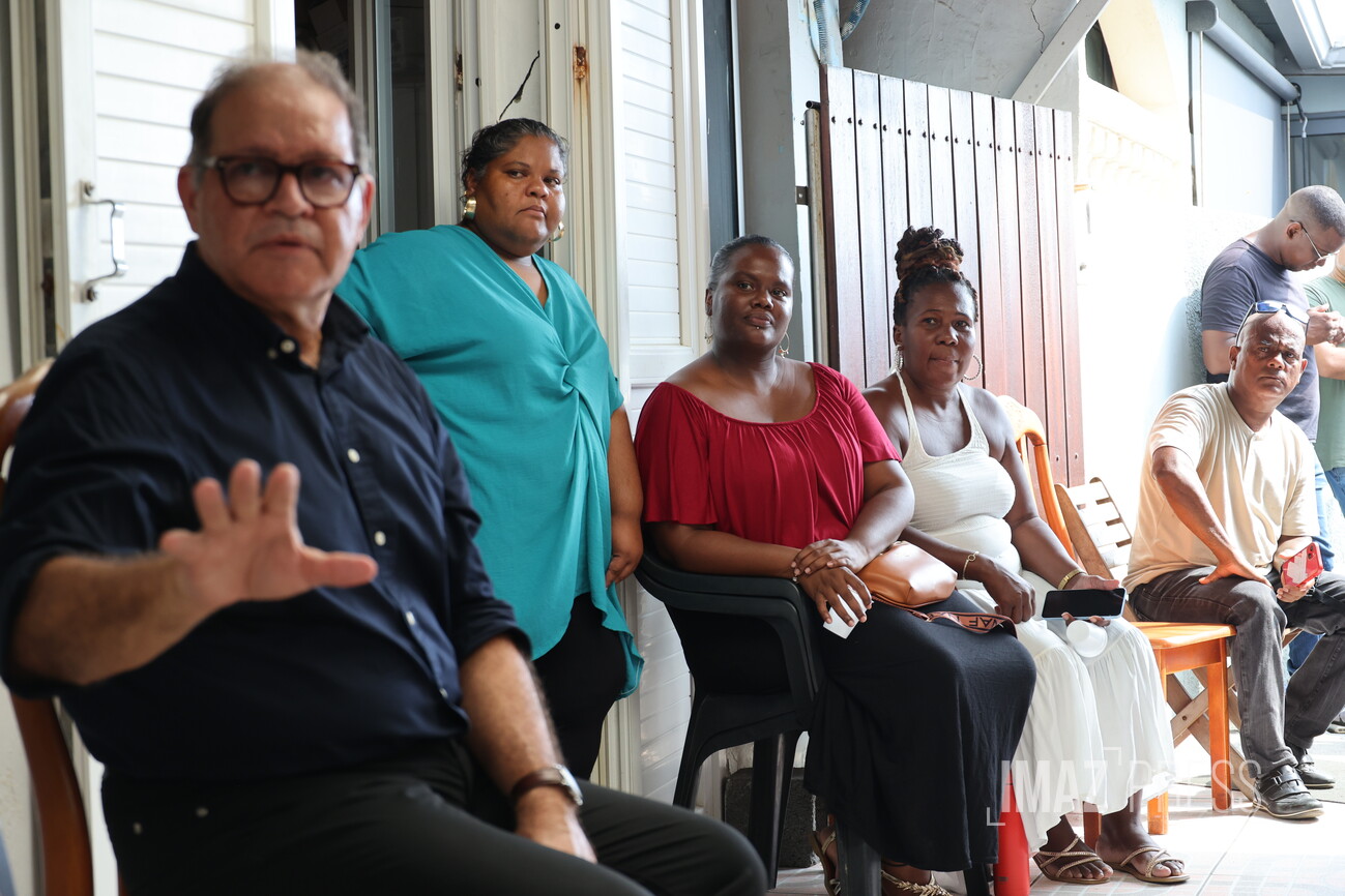 Un militant note soigneusement toutes les doléances. David Lorion, qui a aussi été député LR de Saint-Pierre de 2017 à 2022, répond à chacune des questions, à chaque préoccupation.