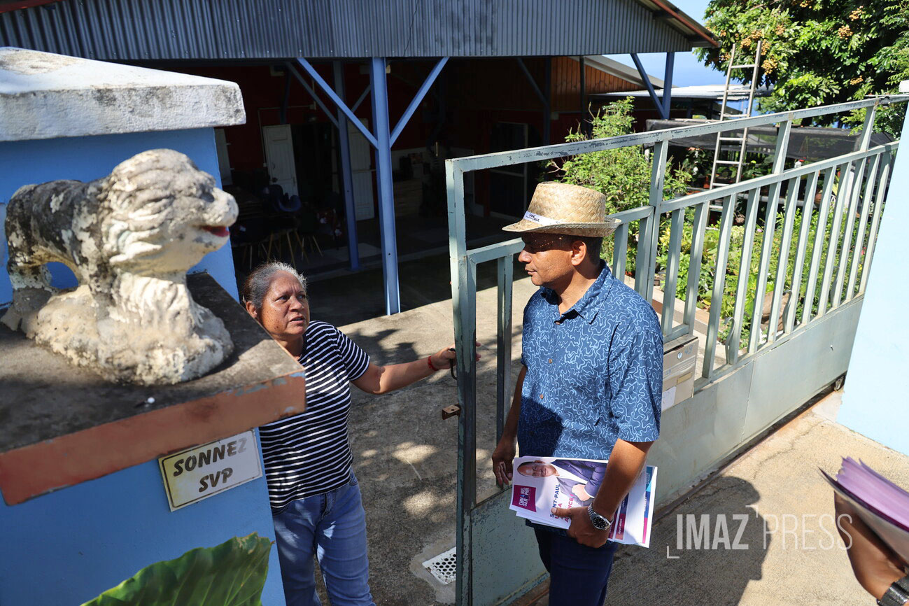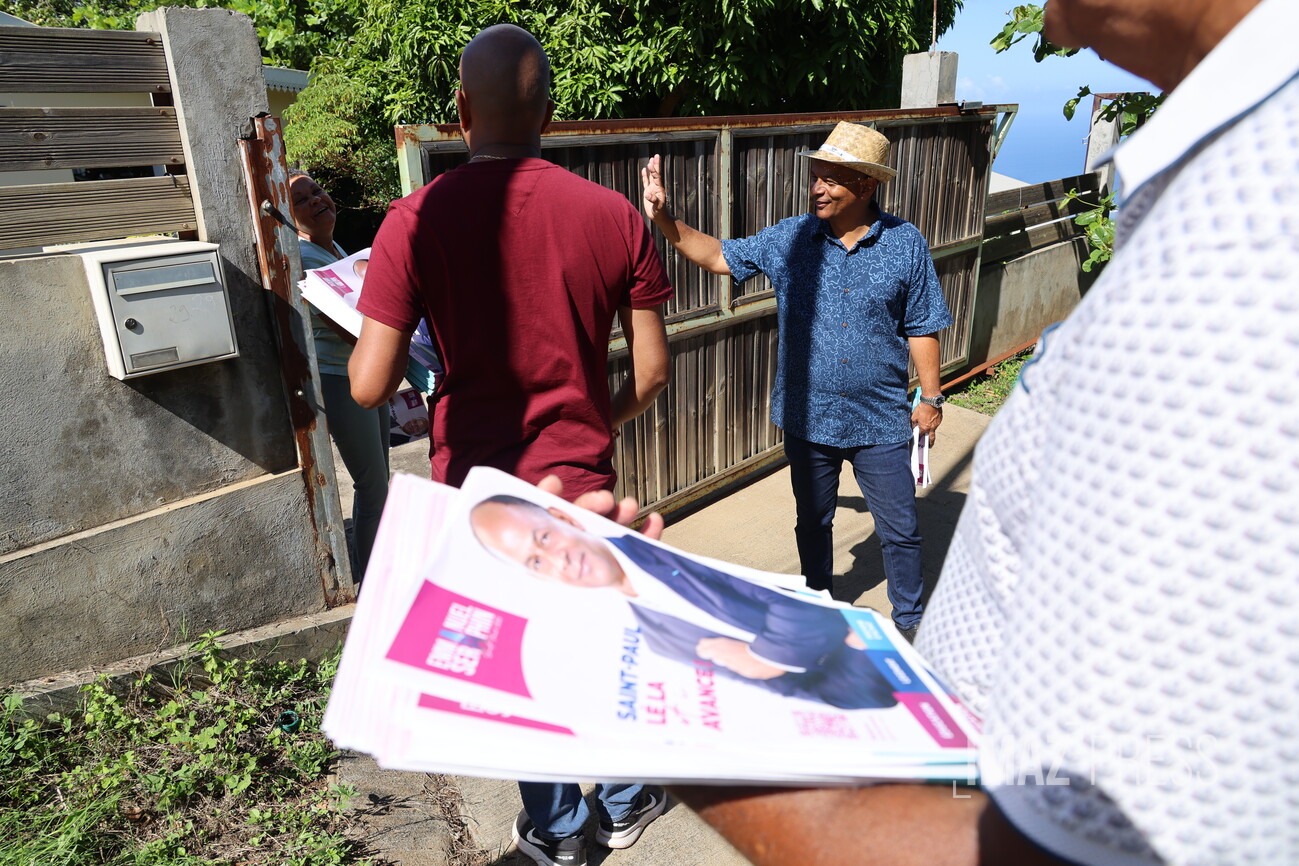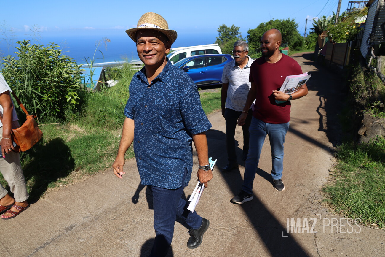Une remise de tracts retraçant les grandes lignes de son programme et une accolade plus tard, Emmanuel Séraphin poursuit sa déambulation devant les kaz toujours écrasées de soleil.