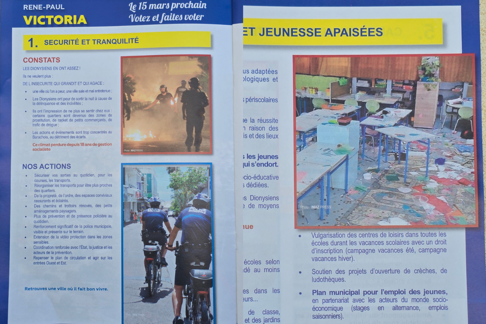C'est avec stupéfaction que de notre rédaction a découvert ce jeudi 26 février 2026 les tracts électoraux de René Paul-Victoria. Entre les paragraphes portant sur son programme, on peut y retrouver des reproductions de nos photos pour illustrer ses douze pages de prospectus.