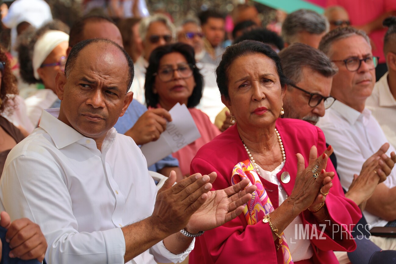 Dans sa prise de parole, la députée Karine Lebon a également pointé du doigt l'opposition. "Il faut être clair, deux visions s'opposent dans cette élection : ceux qui se présentent comme des candidats mais qui n'ont pas l'intention de travailler pour la population, ils préfèrent les petits calculs et les promesses sans lendemain", dit-elle, visant Cyrille Melchior.