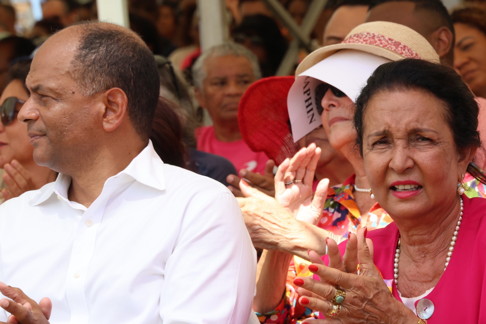 "Vous pouvez compter sur toutes les forces que nous pourrons déployer pour soutenir Emmanuel Séraphin, maire de Saint-Paul qui va rester maire de Saint-Paul. Je vous le dis avec le cœur, Emmanuel est l'homme politique que nous voulons", déclare Huguette Bello.