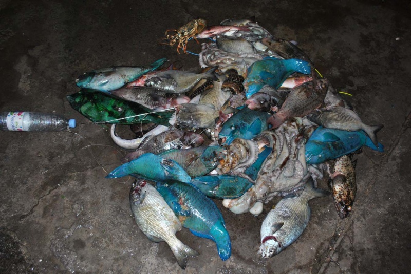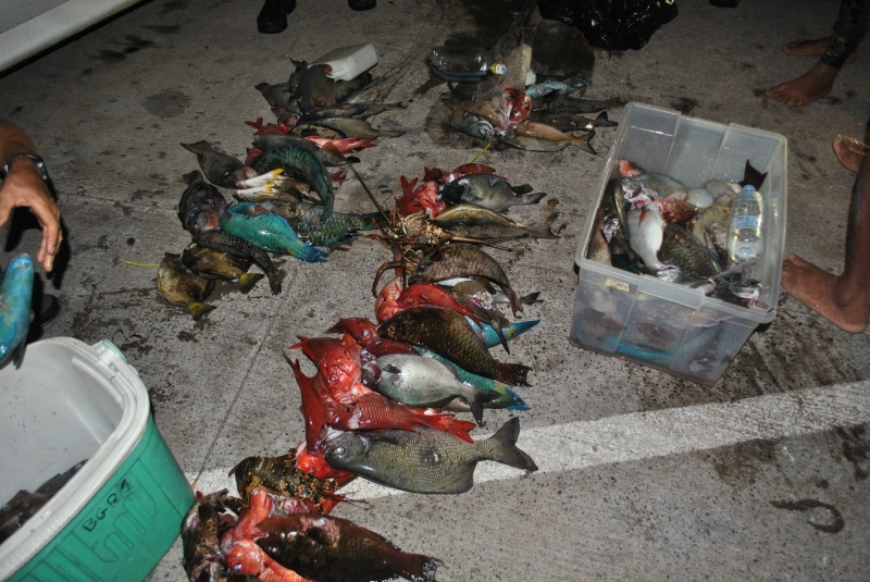 Au total, 110 kg de poissons de récifs, de pieuvres et de langoustes ont été saisis au cours de cette mission commune des agents de la Réserve marine et de la Brigade nature de l'Océan Indien.