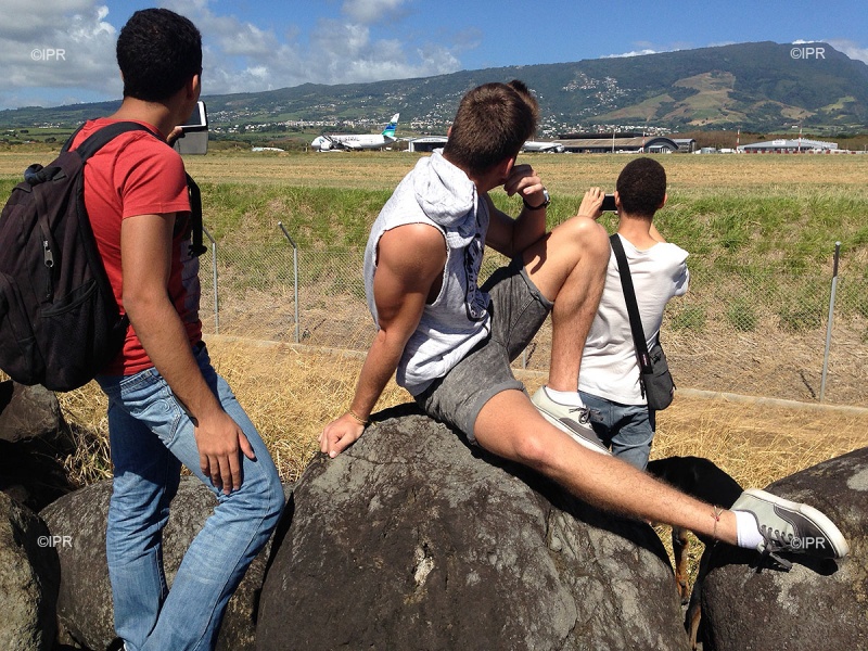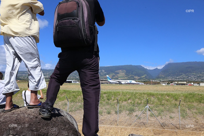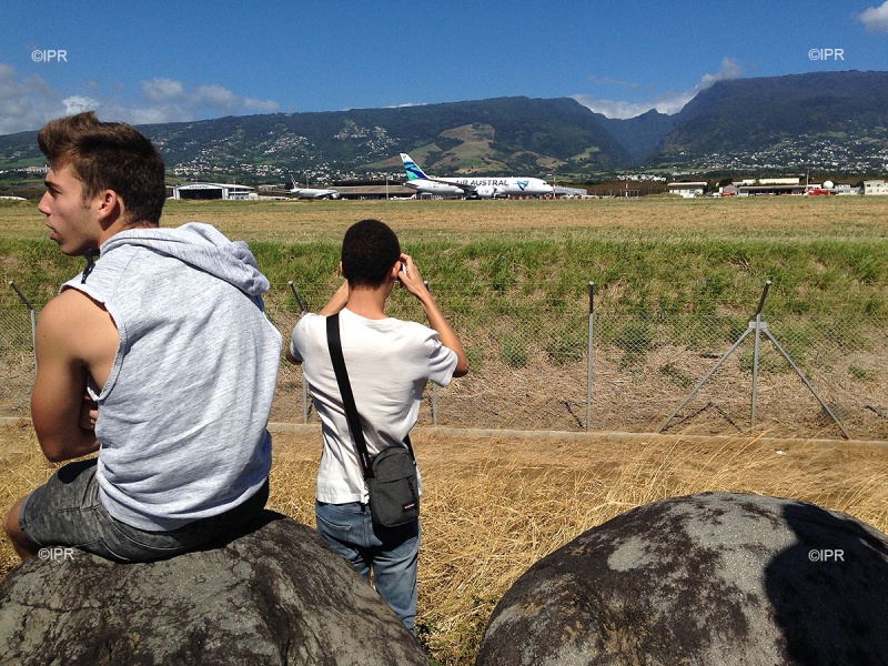 Ils étaient nombreux ce mercredi 25 mai 2016, à guetter l'arrivée du nouveau Boeing 787-8 d'Air Austral. Parmi les spotters, installés en fin de matinée à la "Bretelle Alpha", au dessus de la piste, ou sur les tétrapodes côté mer, beaucoup de profils différents : des parents venus avec leurs enfants, des jeunes qui rigolent entre potes, et puis les "pro". Armés d'appareils photos imposants, de trépieds, de téléobjectifs, certains sont même connectés directement sur la fréquence radio de la tour de contrôle. Rencontre avec ces passionnés d'aviation, qui se retrouvent près des pistes, mais aussi sur Facebook.
