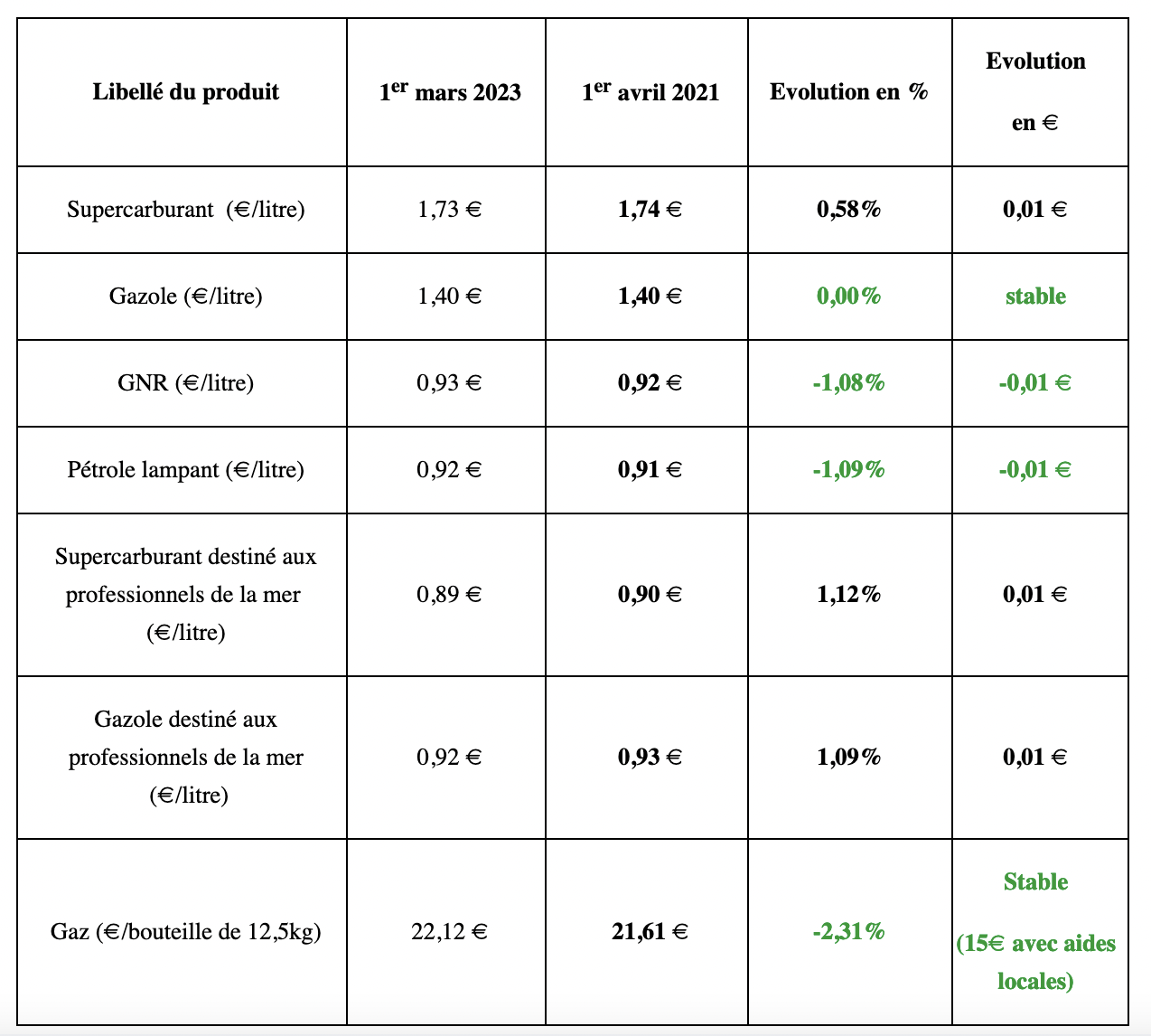 Au 1er avril 2023, le prix du gazole reste stable à 1,40 euro le litre. Le super sans plomb augmente de 1 centime par litre pour atteindre 1,74 euro le litre. La bouteille de gaz bénéficie toujours de soutiens des collectivités et demeure à 15 €. Nous publions ci-dessous le communiqué de la préfecture (Photo : rb/www.imazpress.com)