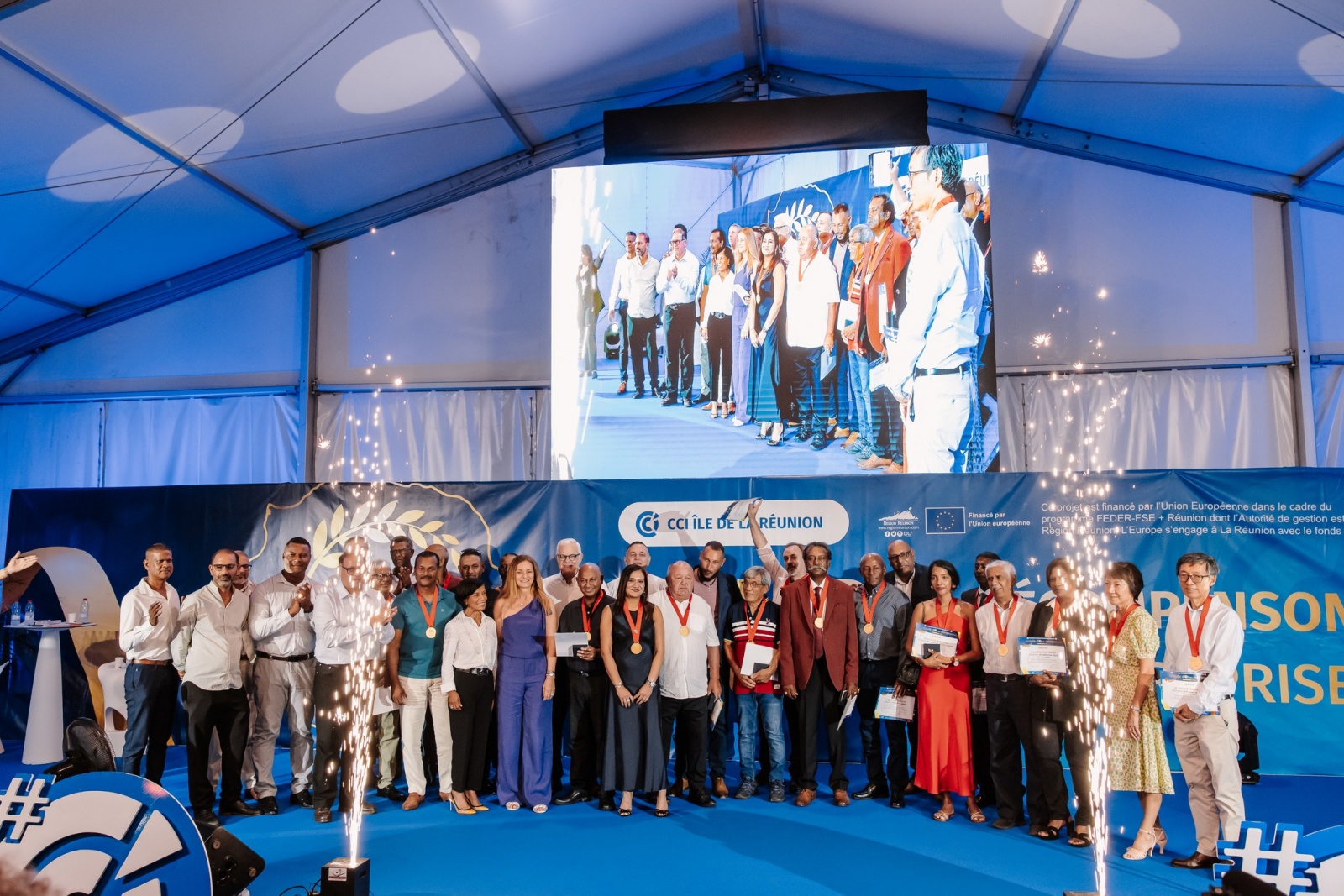 97 lauréats ont été récompensés par le Président de la CCI Réunion, Pierrick Robert, le Président de CCI France, Alain Di Crescenzo, les élus de la CCI Réunion ainsi que la marraine de cette nouvelle édition, Shenaz Zadvat.