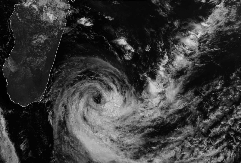 Passé à 350 kilomètres de nos côtes dans la nuit de dimanche à lundi, Chedza s'éloigne ce 19 janvier 2015 de La Réunion. A 16 heures, le météore se situait à 525 kilomètres au sud-ouest de l'île. Le phénomène, rétrogradé au stade de dépression post-tropicale, se dirige vers le sud à une vitesse de 11 km/h. Il n'y a pas d'alerte en cours à La Réunion, et aucune menace cyclonique n'est envisagée pour les prochaines 72 heures. (Image Mtotec)