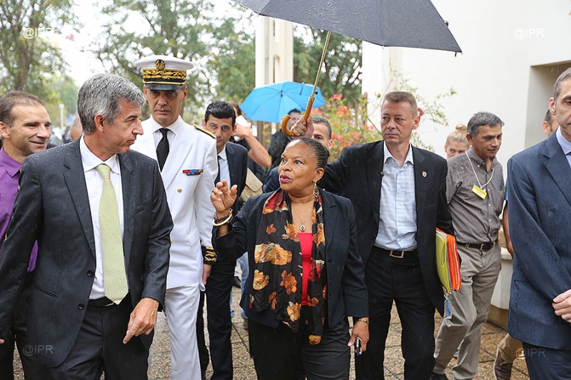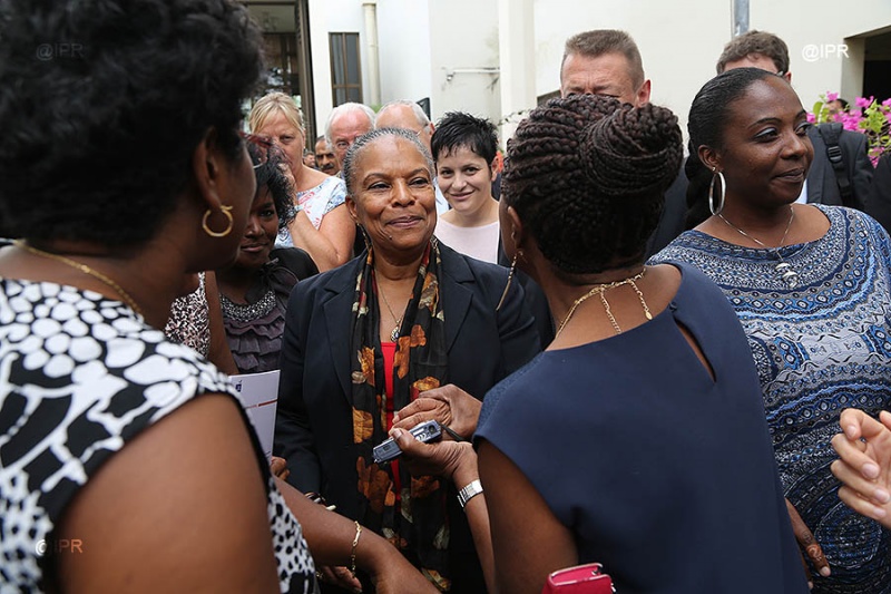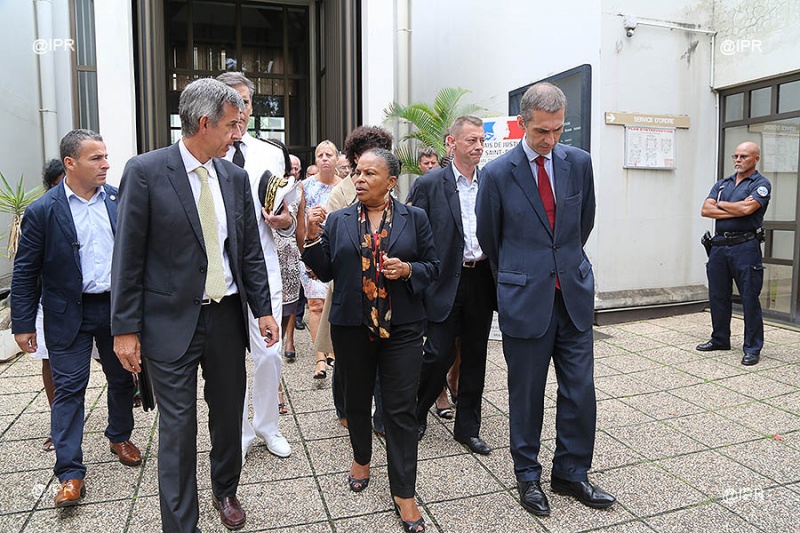 Christiane Taubira est arrivée ce mercredi 15 octobre 2014 au tribunal de grande instance de Saint-Denis. La ministre - qui a été notamment accueillie par le nouveau procureur Eric Tuffery et le procureur général Claude Laplaud - est venue en compagnie du préfet Dominique Sorain. La garde des Sceaux a visité les différents services du TGI, avant de s'entretenir avec les organisations syndicales et les professions réglementées. Cette visite a surtout été l'occasion pour les justiciables réunionnais d'interpeller la ministre de la Justice sur de nombreux dossiers.