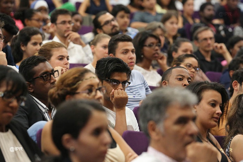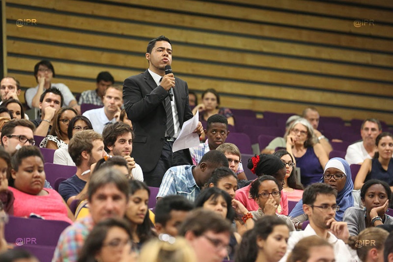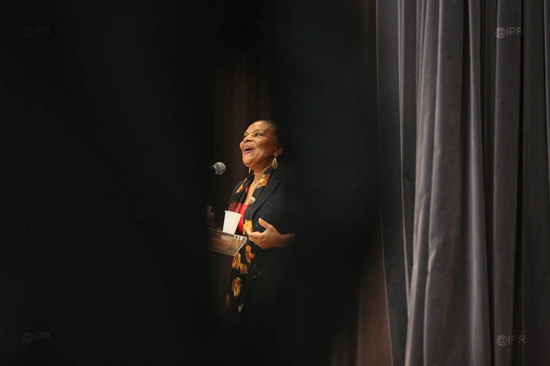 Après une longue matinée passée au tribunal de grande instance de Saint-Denis à tenter de répondre aux interrogations judiciaires des uns et des autres, après la défense de sa réforme de la "justice du XXIème siècle", après ses visites dans un foyer d'action éducative de la protection judiciaire de la jeunesse puis dans un centre d’accueil pour les femmes victimes de violences conjugales, Christiane Taubira s'autorise une "petite parenthèse dans un programme rude", selon ses mots, à savoir une "rencontre libre" avec les étudiants de l’université de Saint-Denis.