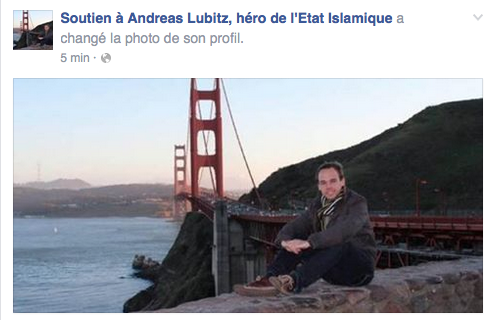 A noter que quelques minutes après la révélation du nom du copilote, une page intitulée "Soutien à Andreas Lubitz, héros de l'Etat Islamique" a été créée avec une photo de l'Allemand posant devant le pont du Golden Gate à San Francisco.