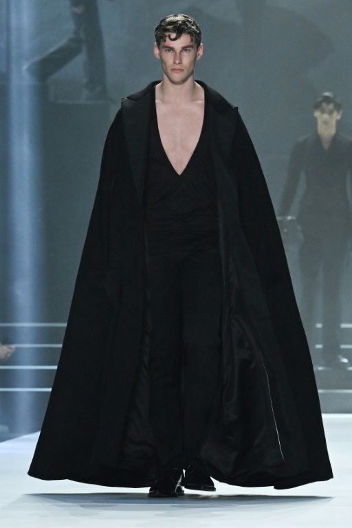 Mais le noir est parfois illuminé par des cristaux brodés qui rappellent la roche volcanique humide de l'Etna et du Stromboli, selon le duo sicilien. Autre fantaisie, des chemises à dentelles translucides et des tops microscopiques.