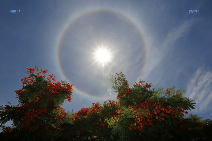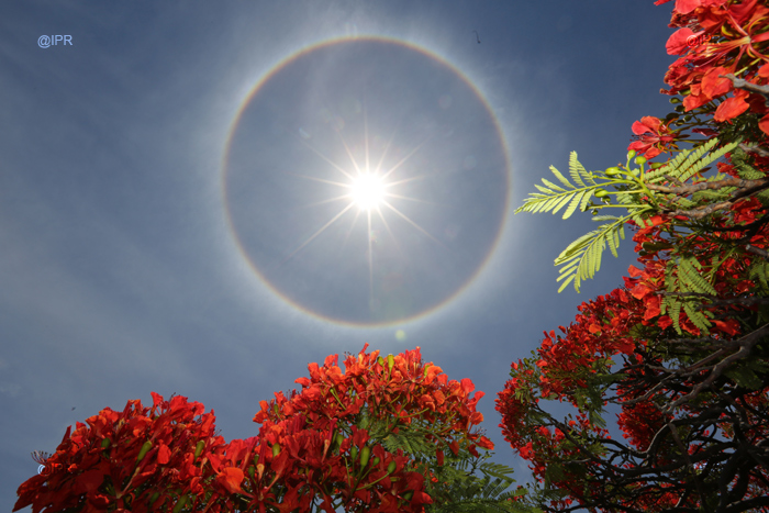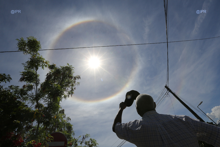Ce mardi 12 novembre 2013, dans l'ouest de l'île, beaucoup de regards on été attirés par un important halo lumineux s'étant formé autour du soleil. Un phénomène qui est devenu une habitude, un cercle de lumière similaire ayant déjà été observé il y a un mois presque jour pour jour, le 11 octobre dernier. Pourtant, ce genre de halo issu du reflet de la lumière du soleil à travers les nuages d'altitude est en principe plutôt rare...