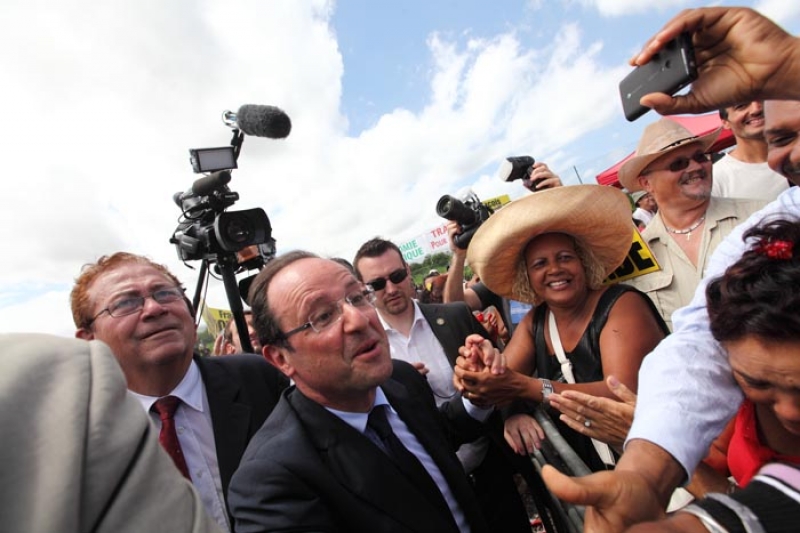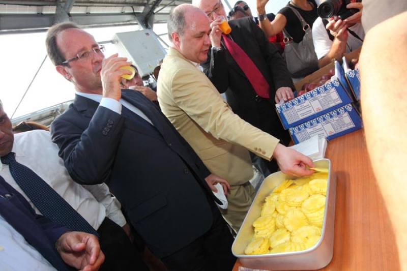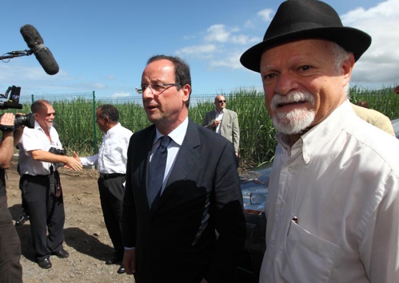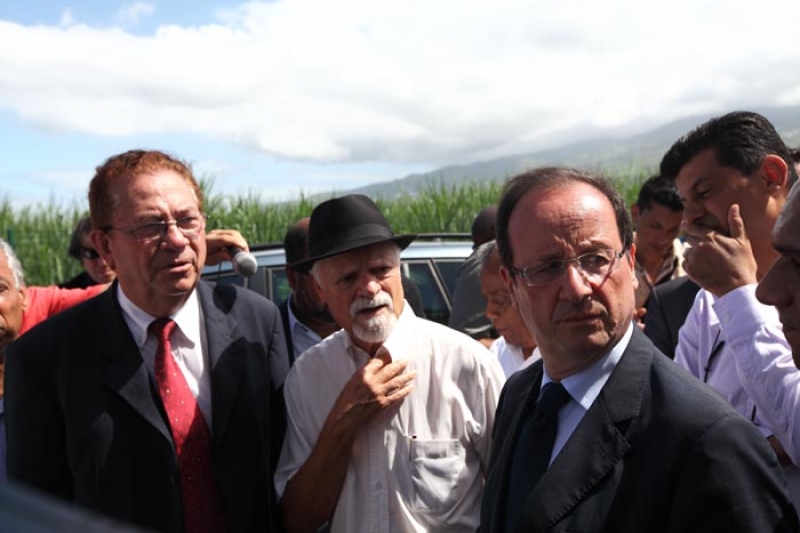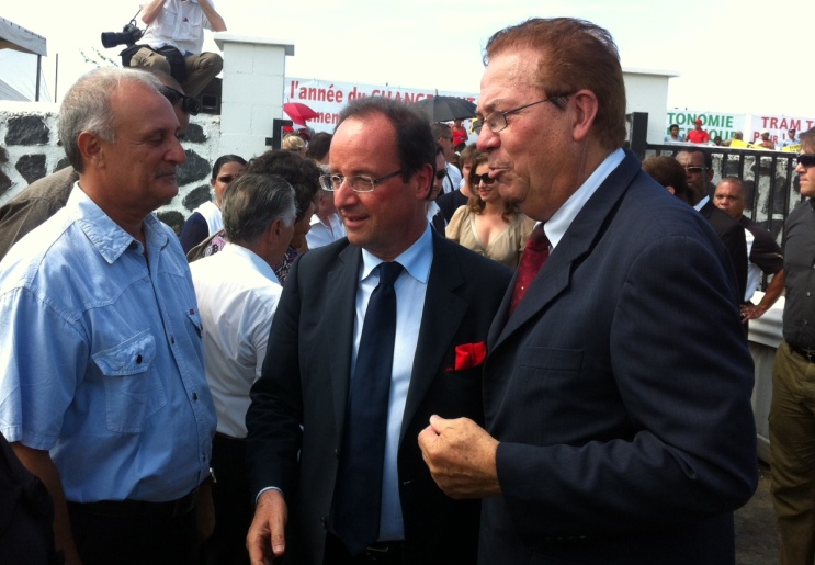 11h30 : les discours commencent. Claude Hoarau s'adresse à François Hollande : "Notre parti n'avait pas forcément vocation à appeler à voter pour toi dès le premier tour. C'est parce que tu t'engages sur le programme de développement que nous t'avons soumis, que nous avons lancé cet appel. Nous sommes ici pour sceller cet accord". Il poursuit : "Je rêve que le président que tu seras dise, dans des conditions qui restent à définir, que la France regrette le massacre de 100 000 Malgaches en 1945. Je rêve que le président que tu seras dise que les Chagossiens ont été spoliés de leur terre. Je rêve que le président que tu seras dise "voilà les clés pour que vous négociez au nom de la France avec les pays de la zone, notamment sur les questions économiques"".