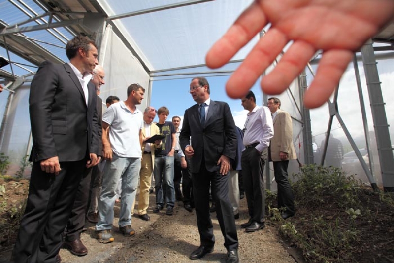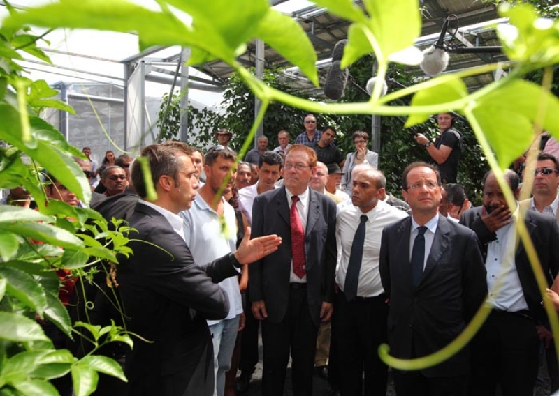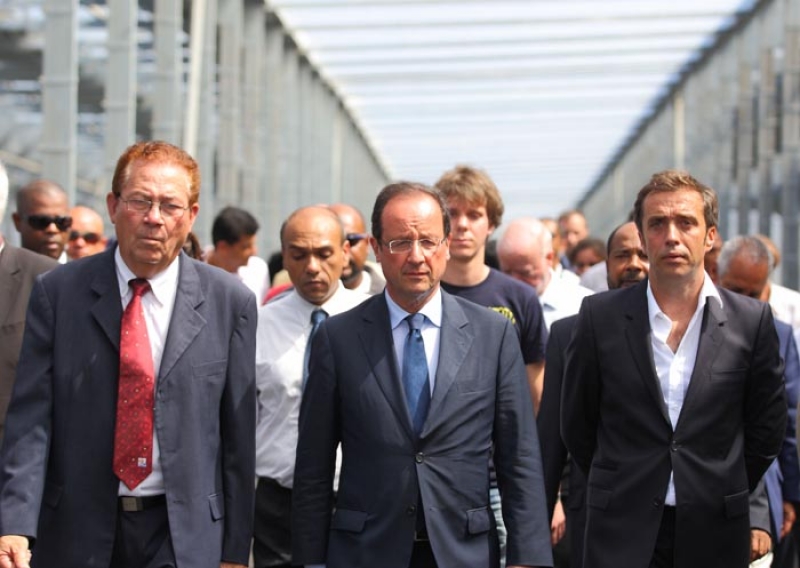 10h40 : François Hollande est arrivé dans le quartier du Gol pour une visite des serres photovoltaïques.