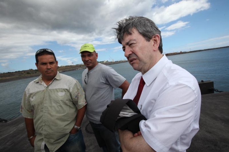 A l'invitation de la CGTR ports et docks, le leader du Parti de Gauche a accepté de venir rencontrer les dockers ce lundi matin. "Je ne sais pas ce que je peux faire pour vous mais ce que je peux vous dire, c'est que je respecte votre travail", a-t-il lancé lors de son discours.L'homme politique a ensuite évoqué la politique énergétique locale. Une politique qui "a pris tout son sens avec l'impulsion de Paul Vergès", selon lui. Qualifiant l'ancien président de Région de "visionnaire", Jean-Luc Mélenchon a encensé l'objectif fixé d'atteindre l'autonomie énergétique à l'horizon 2030. "La France a besoin de vous", a-t-il expliqué. "Vous êtes à la pointe du progrès en matière de politique énergétique", n'a cessé de marteler Jean-Luc Melenchon.