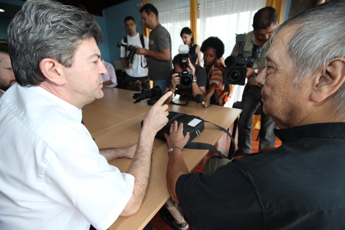 Jean-Luc Mélenchon a ensuite rencontré Roland Robert, président de l'association des maires de La Réunion, pour évoquer la question de l'octroi de mer. L'après-midi a été consacrée à une rencontre avec Paul Vergès, en tant que président de l'Observatoire national sur les effets du réchauffement climatique. "Je viens voir Paul Vergès comme on vient voir un maître à penser", a-t-il déclaré au début de l'entrevue. Le député européen en est à sa 3ème visite sur l'île. "A chaque fois, j'ai rencontré Paul Vergès", a-t-il précisé.