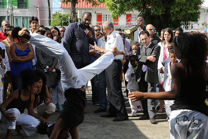 Le champion olympique et septuple champion du monde a d'abord rencontré les marmailles du centre de loisirs des jeunes de la police à Sainte-Clotilde. Il a été accueilli par les sociétaires du club de moringue de Sainte-Suzanne. L'occasion pour lui d'esquisser quelques pas de ce combat dansé. Jean-François Lebon, directeur départementale de la sureté urbaine (DDSP) a ensuite présenté l'historique du centre de loisirs