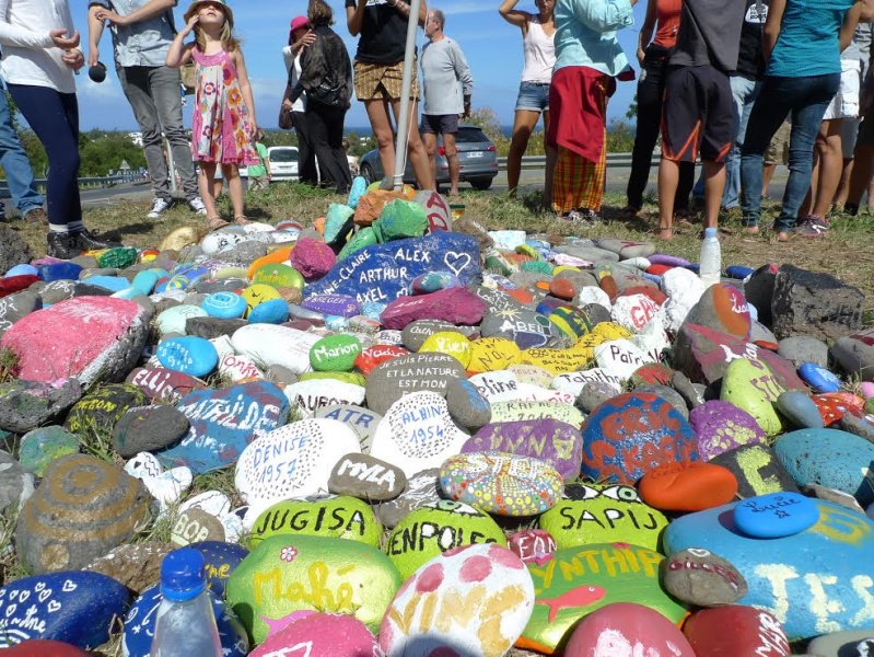 Des dizaines de galets personnalisés - qui portent notamment le prénom d'enfants - ont été installés ce dimanche. "Cet édifice à vocation à grossir dans les prochaines semaines, le collectif a posé la "première pierre" ce dimanche", a précisé "Touch pa nout roche."