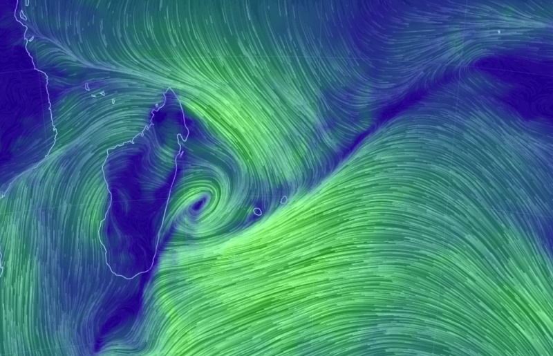 Aux averses s'ajoutent de fortes rafales de vent soufflant entre 70 et 80 km/h sur les cotes Nord-Ouest et Est. "Au volcan, sur les plaines et au Maïdo le vent perd un peu de vigueur par rapport à lundi, mais les rafales sont de l'ordre de 80km/h" indique Météo France. Dans la nuit de lundi à mardi des rafales soufflant à 100 km/h ont été enregistrées au Maïdo.