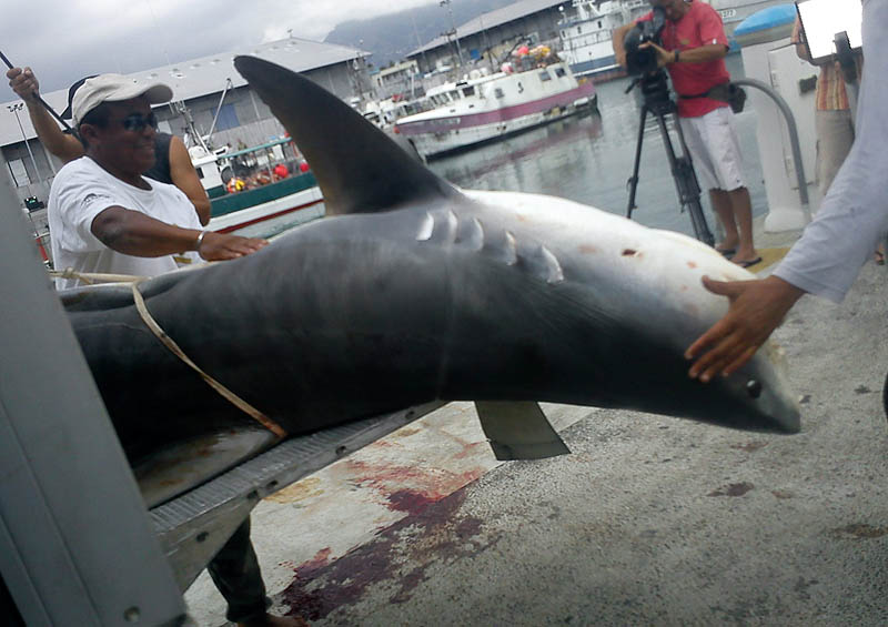 D'après un rapport commandé par l'Union européenne et publié ce mardi 30 juillet 2013, la France arrive douzième du classement des pays tuant le plus de requins au monde, les plus gros pêcheurs de squales étant les Indonésiens, les Indiens et les Espagnols. (Photo archives CRPMEM)