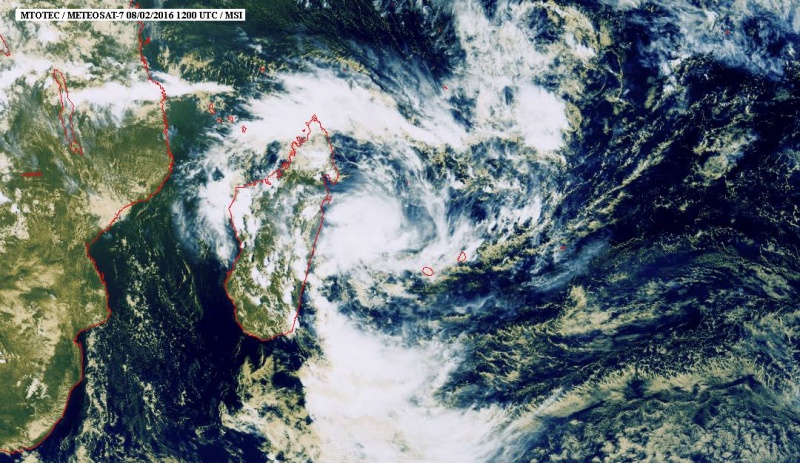 La perturbation tropicale située à 16 heures locales à 330 km au nord-ouest de la Réunion génère un vent fort de Nord-Est accompagné de rafales dépassant localement les 100km/h sur les reliefs exposés de l'ouest et du sud du département. La perturbation génère également un temps pluvieux sur notre département. Les pluies sont prévues s'intensifier en début de soirée et la nuit prochaine sur le nord, l'est et le sud-est de l'île.
