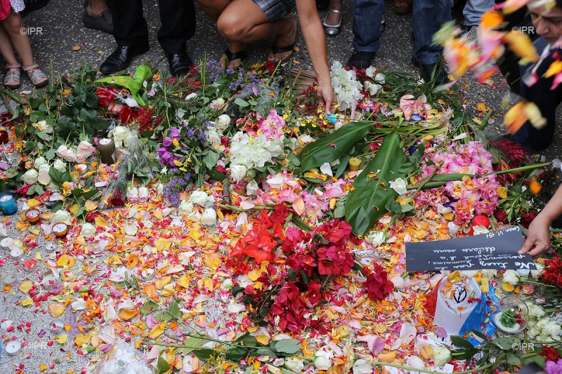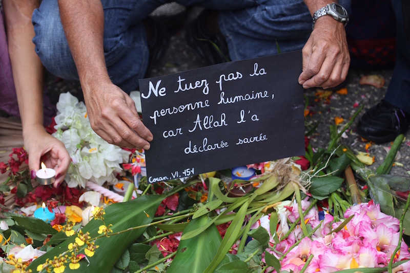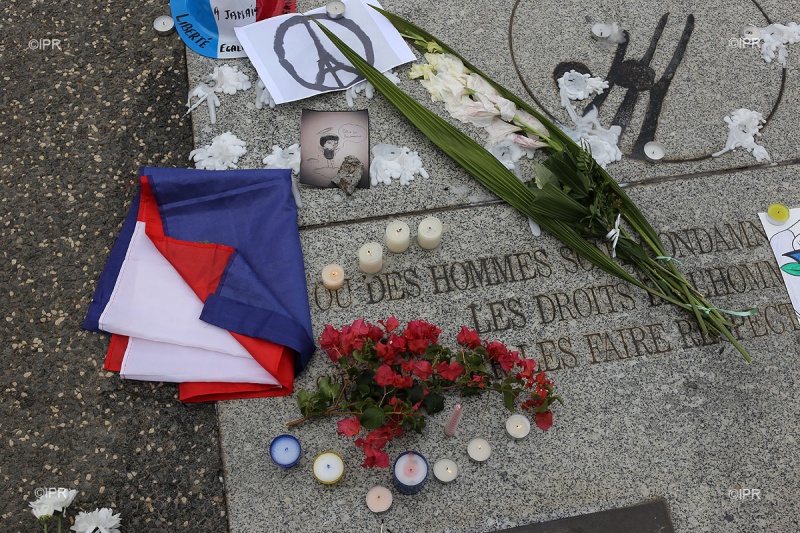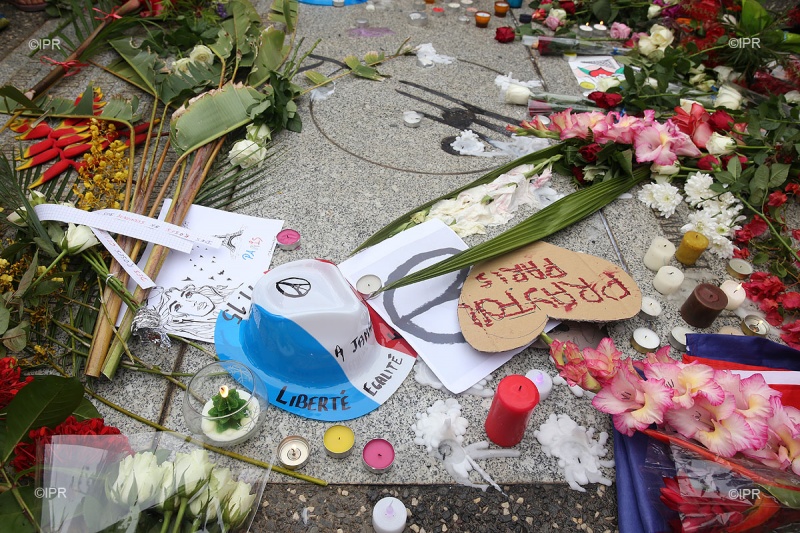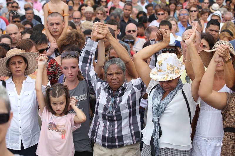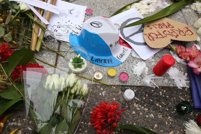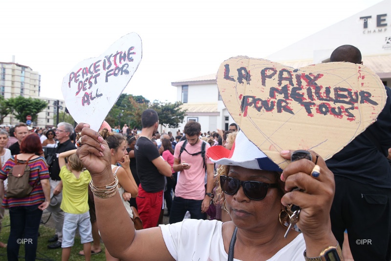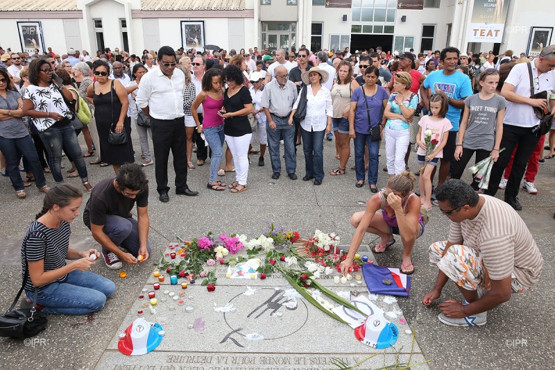 L'appel au rassemblement de la Ligue des droits de l'homme réunit ce dimanche 15 novembre 2015 un millier personnes sur le parvis des Droits de l'homme à Champ Fleuri (Saint-Denis). L'heure est au recueillement et au dépôt de fleurs et de bougies. Des gens de toutes confessions se sont réunis pour rendre hommages aux victimes décédées sous les balles de terroristes alors qu'ils étaient en train d'écouter un concert ou de prendre un verre en terrasse dans les rues parisiennes. La Réunion se recueille, 48 heures après les attaques qui ont fait saigner Paris le vendredi 13 novembre 2015.