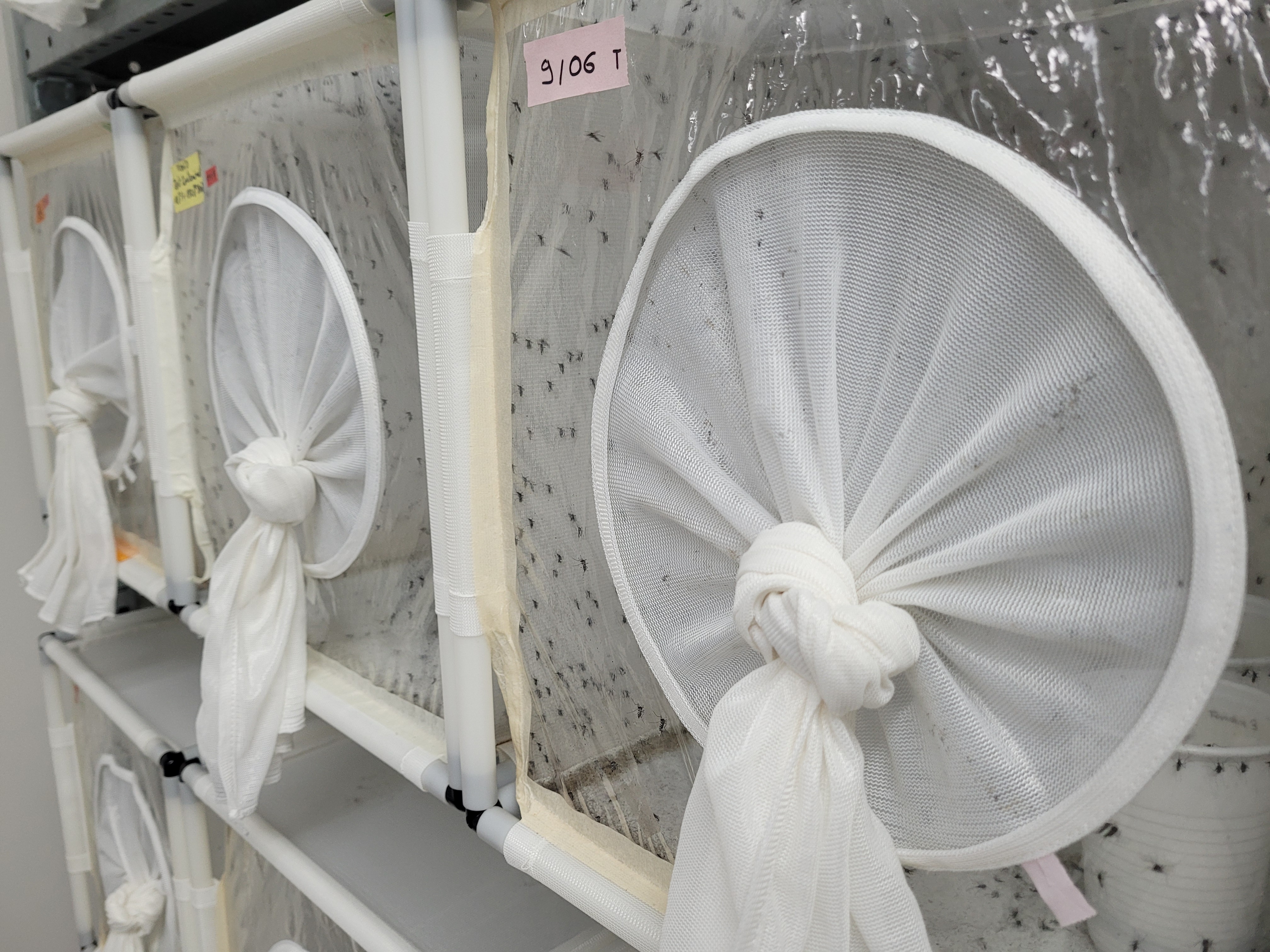 Pour cette étude, des moustiques péi ont été élevés au CYROI (Cyclotron Réunion Océan Indien) à partir d'œufs collectés dans la zone de Duparc, puis se sont reproduits dans une usine d'élevage en masse équipée de la technologie spécialisée nécessaire pour élever les moustiques à grande échelle. Le système mis en place a permis de réaliser une production hebdomadaire de 300 000 à 500 000 moustiques tigres en moyenne.
