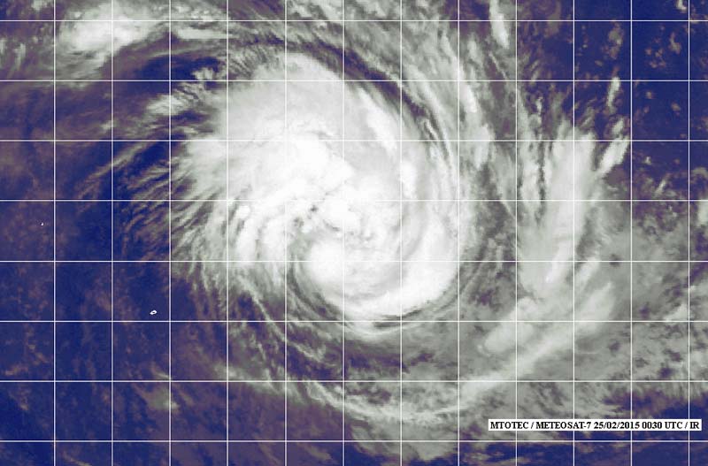 À 16 heures ce mardi 25 février 2015 la tempête modérée Glenda se trouvait à 1 390 km à l'est de La Réunion (18.4 sud et 68.8 est). Le système se déplace à 15 km/h vers le sud-sud-ouest