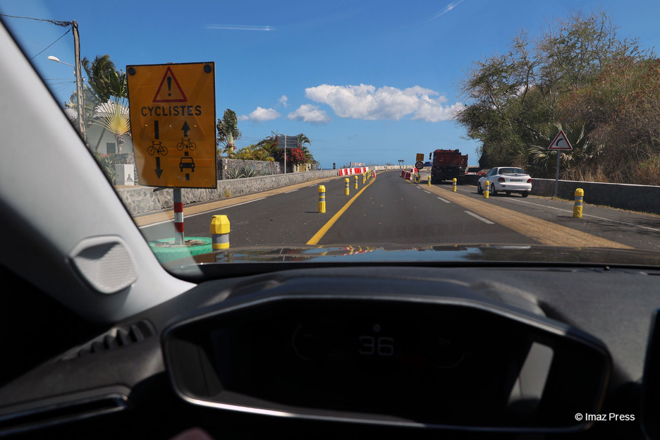 Sur la RN1A à Saint Paul, le Cap Lahoussaye sera rouvert à la circulation dans le sens Sud/Nord ce samedi 25 mars à partir de 21h. Les travaux de création de bandes cyclables se poursuivent dans le sens Nord/Sud jusqu’au mois de juillet. Une déviation est mise en place par la RN1 Route des Tamarins et la RD10. (Photo photo RB imazpress )