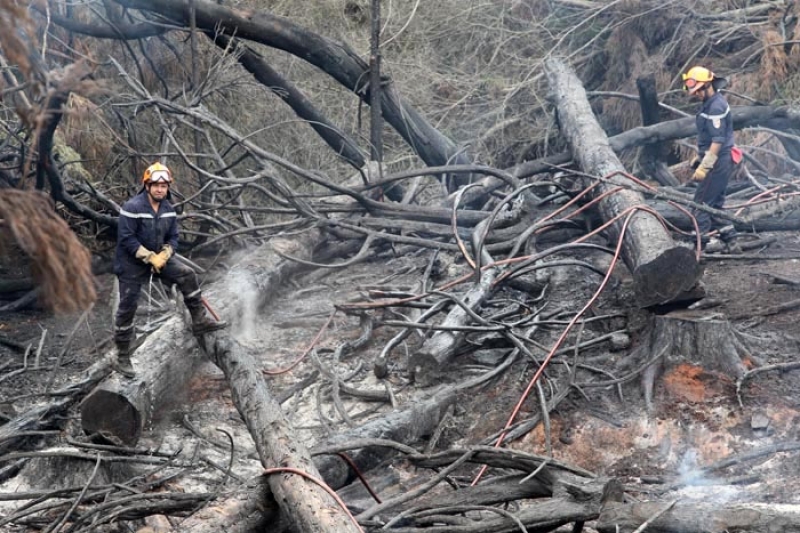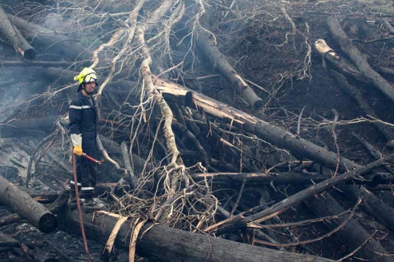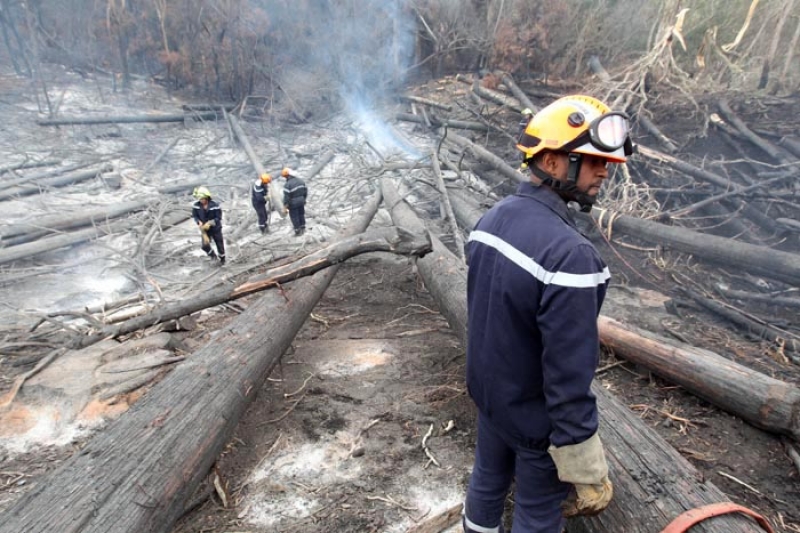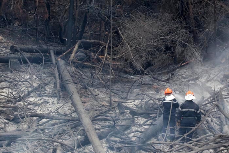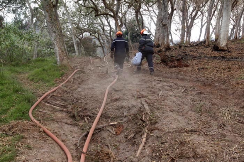 Attisé par un vent violent qui souffle depuis deux jours, le feu a repris ce lundi 19 novembre 2011 dans les hauts de l'Ouest, aux abords de la route forestière des Tamarins. Le message d'alerte a été donné à 7h15 alors que le Dash 8, avion bombardier d'eau, effectuait une reconnaissance. Une trentaine de sapeurs pompiers a été dépêchée sur place, dont une vingtaine envoyée directement sur le feu. A 10h30, Elvis Chamand, capitaine des sapeurs pompiers annonçait : "Le feu est désormais fixé, mais pas maîtrisé. Nous restons extrêmement vigilants même si le risque d'un embrasement est faible puisqu'il s'agit d'une zone qui a déjà brûlé".
