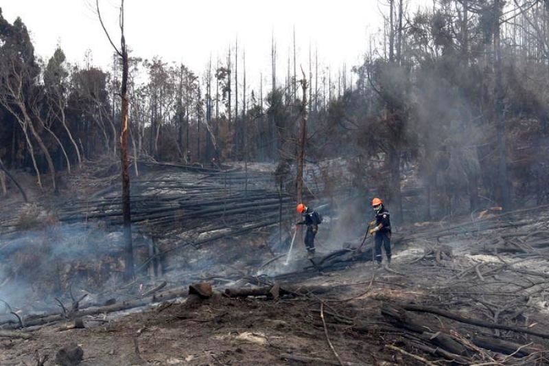 Localisée à environ 1 kilomètre du gîte des Tamarins, la reprise de feu s'étendait sur 8000 m2 ce lundi. Une vingtaine de sapeurs pompiers a été déployée, ainsi que cinq engins. Le Dash a une fois de plus été d'une grande aide en effectuant quatre largages d'eau, avant de stopper son action en raison de conditions météorologiques défavorables.Aucun élément ne laisse penser à un incendie criminel. Le feu couvant toujours sous terre, il s'agirait plutôt à une reprise suite à un vent violent qui souffle depuis deux jours.