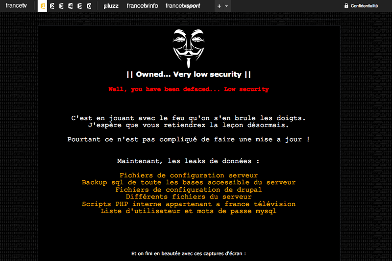 Laissez-moi rire, les Anonymous leur ont mis le nez dans leur caca, c'est pourtant limpide non!! Des sites non mis à jour truffés de failles de sécurité importantes, qu'ils s'estiment heureux d'avoir eu cet "audit" gratuit. Des personnes vraiment malveillantes auraient pu faire tomber ces sites bien plus longtemps (à voir les failles sur les fichiers de conf des serveurs...) et d'empêcher pour le coup de les 'priver de la possibilité de faire circuler l'information'... Tout ce blabla pour se défausser de l'incompétence notable des responsables technique... Bien fait, la leçon est retenue (enfin j'espère...)