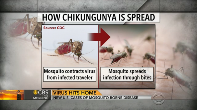 Un premier cas autochtone de chikungunya a Ă©tĂ© dĂ©couvert en Floride, indique ce jeudi 17 juillet 2014 le gouvernement amĂ©ricain dans un communiquĂ©. Cette situation est inĂ©dite aux Etats-Unis, oĂč 243 cas associĂ©s aux voyages ont dĂ©jĂ Ă©tĂ© signalĂ©s dans 31 Etats du pays depuis 2006. Deux espĂšces de moustiques vecteurs de la maladie ont Ă©tĂ© signalĂ©s dans le sud-est et le sud-ouest du pays. Cette nouvelle dĂ©couverte a eu lieu alors que l'Ă©pidĂ©mie du virus a touchĂ© plus de 115 000 personnes, notamment en Martinique et en Guadeloupe. (capture d'Ă©cran CBS News)