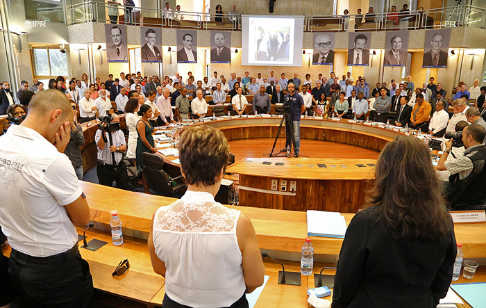Presque l’ensemble de la classe politique réunionnaise s’est rassemblée pour saluer la mémoire d’un homme qui aura marqué l’histoire de la Possession et de La Réunion. Une minute de silence a été respectée en présence de la famille endeuillée de Roland Robert. Un film retraçant le parcours de l’élu a également été diffusé, avant d’être chaudement applaudi par les élus.